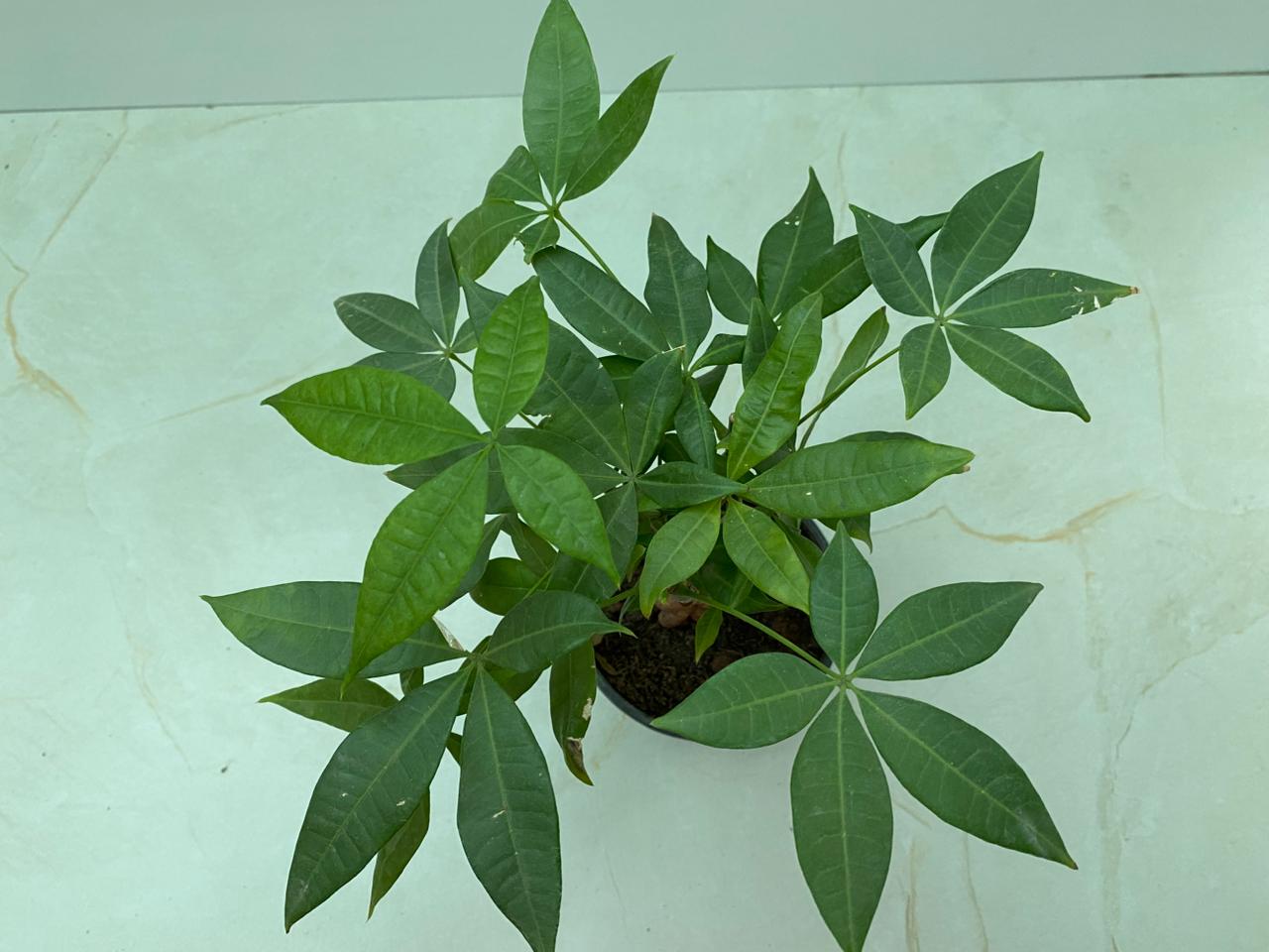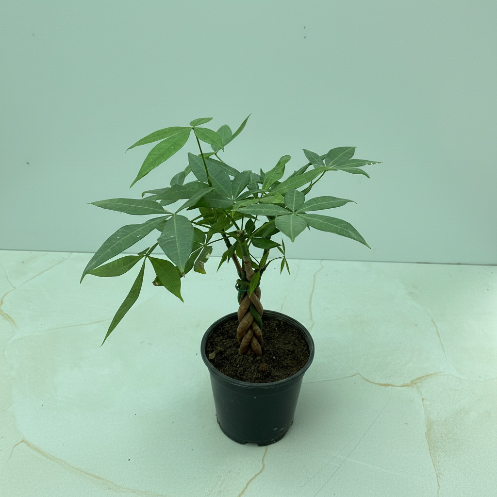 Caring for a Money Tree plant is simple and stress-free. Place it in a location with bright, indirect sunlight. Avoid direct midday sun, as strong rays may scorch the leaves. Water the plant when the top 1–2 inches of soil feel dry. The soil should remain slightly moist but never soggy, as overwatering can damage the roots. Using a well-draining potting mix with good aeration helps maintain healthy growth. The Money Tree prefers moderate to high humidity, making it suitable for indoor conditions. It grows best in temperatures between 18°C and 28°C and should be protected from cold drafts or sudden temperature changes. During the growing season in spring and summer, apply a balanced liquid fertilizer once every 3–4 weeks to support healthy leaf growth and a strong trunk. In cooler months, growth slows, but the plant remains attractive all year round indoors.